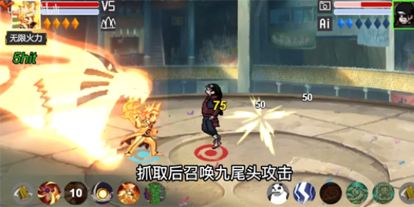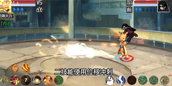 九喇嘛鸣人普攻共4a,前3a具有很长的位移,4a可以抓取敌方并扔出,还能通过摇杆换位,按住下方向留在原地,按住上方向会移动到空中。