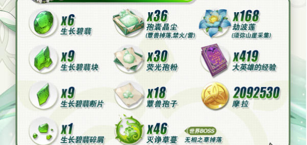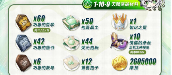 二、纳西妲天赋突破材料(1~10级)