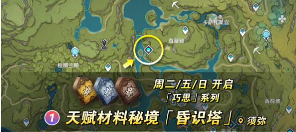1、天赋突破材料【巧思】系列副本昏识塔,周二/五/日开放。