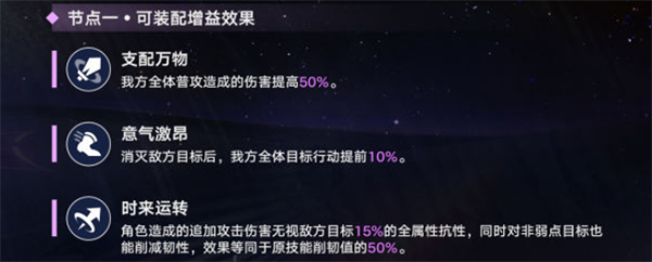 我方全体角色击破特攻提高50%,角色击破敌方目标弱点时,恢复该角色5点能量。