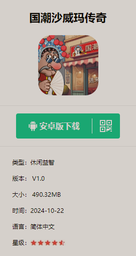 国潮沙威玛传奇怎么下载?国潮沙威玛传奇是一款非常经典充满了趣味性和挑战性的休闲益智经营模拟类手机游戏,这款游戏中玩家们将经营着一家沙威玛卷饼店铺,很多小伙伴们不知道在哪里下载,在这里小编为大家准备了这款游戏的下载地址,喜欢这款游戏的小伙伴们快来下载游玩体验一下吧!