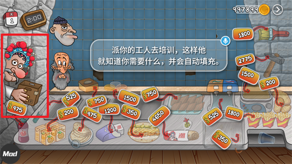 1、工人培训:将工人进行培训后会自动帮助我们填充需要的食材。