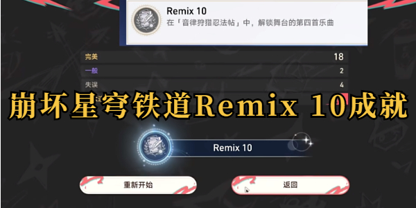 崩坏星穹铁道【Remix 10】成就是2.6版本新活动音律狩猎忍法帖中的隐藏成就,需要玩家解锁舞台的第四首音乐才可以获得,下面就是小编为大家准备的成就达成流程,还没有解锁的小伙伴可以来看看。