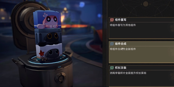 4、在boss关卡位面在挑战前使用旁边的造物台,然后选择“组件合成”,在合成节目位面我们可以置入四枚同星级的组件就可以合成一枚更高级的组件。