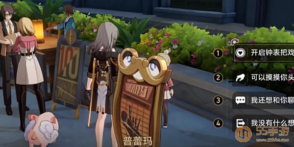 1、在npc普蕾玛旁边我们选择“旁听”旁边的npc对话。