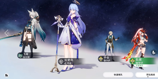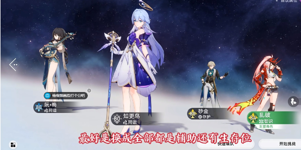 1、我们选择经验书副本挑战,在配队时带上乱破,没有乱破的玩家可以借用一个,然后将其他三个位置的角色全部换成生存和辅助角色。