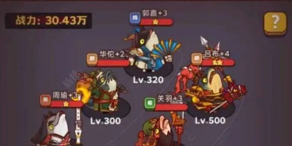 孙策和吕布为核心输出,诸葛亮则提供后期高爆发伤害加成,辅以荀彧和郭嘉的支援,在推图方面表现良好,需要较高的练度才能充分发挥实力。