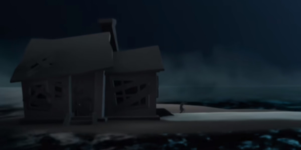 5、在屋外我们可以看见小屋在一片大海上,整体的色彩都是偏向昏暗的。