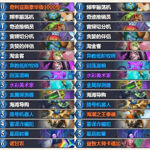 2、前期留牌,面对快攻卡组(术士或者恶魔猎手)的时候,122的奇迹推销员可以留一张,前期帮我们扛一下场面频率,然后全力去找启动组件,40血的我们遇到了海盗瞎还是有可能在第五第六回合被场面击败,因此要尽快启动。