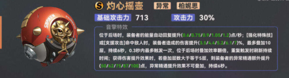 灼心摇壶可以为柏妮思提供她所需要的强化特殊技提升和能量自动恢复提升,能让柏娓思更频繁的使用强化特殊技,提升幅度大。柏妮思大部分时间都是在后台,速切时会打一波爆发异常,而后台回能可以缓解柏妮思的续航压力。