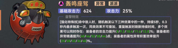 轰鸣座驾可以在强化特殊技攻击到敌方时,从攻击力提升、异常精通提升和异常积蓄提升中选其一进行提升。可作为无S级音擎的首要选择。