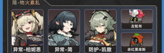简和柏妮思在实战中可以进行物理与火紊乱,柏妮思可以快速挂上灼烧,而简可以挂上强击,同时攻击时触发柏妮思后台连携技,由于双方挂异常速度非常快的角色,可以不断触发物理素乱和火紊乱。