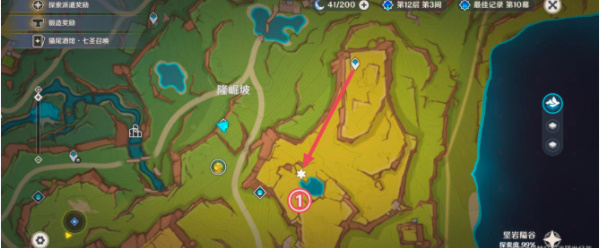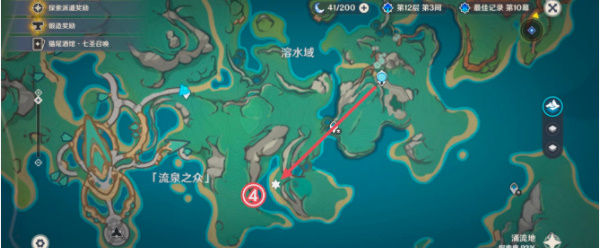 传送到溶水域旁的七天神像,然后按照下图指示的路线过去就可以了。