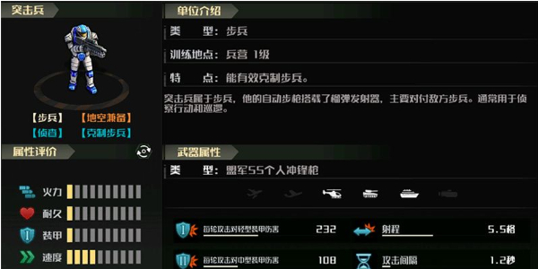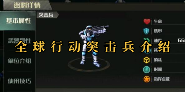 全球行动突击兵介绍?在游戏中突击兵可以说是联盟军中最常见的兵种,很多战场上都少不了它的存在,下面小编就给大家带来全球行动突击兵介绍的相关攻略,感兴趣的小伙伴们一起来看看吧。