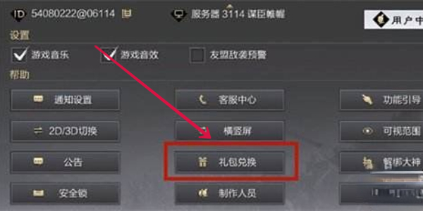 2、在系统页面我们找到“礼包兑换”选项,点击进入兑换页面。