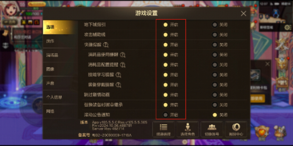 5、建议除了滚动公告关闭以外,其他都可以全部开启,都是非常实用的功能,对于刚玩这个游戏的玩家来说非常友好。