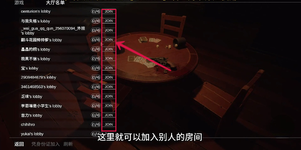 3、在大厅列表中我们可以路人创建的房间,我们可以随便选择一个房间,然后点击后方的“JOIN”加入房间。
