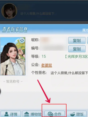 2、在玩家的个人信息页面我们可以点击下方的“合作”选项就可以发送好友申请要求了。