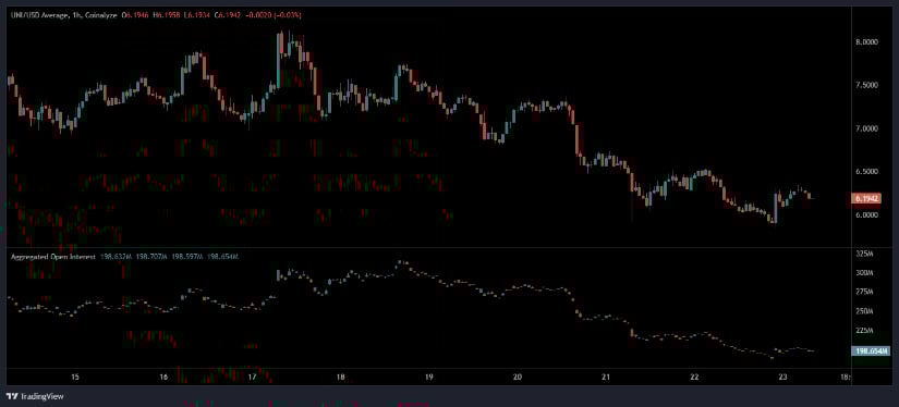 更高时间框架图表显示UNI处于5.90-6.40美元宽幅区间,与小时线显示的短期盘整格局吻合。尽管现货流动性稳定,但市场仍在寻找方向,未能形成决定性突破。