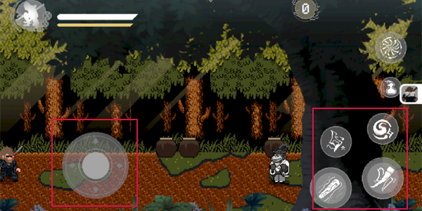 2、进入到游戏内,玩家们滑动左下角轮盘控制角色移动,右下角按键点击后可以释放对应的攻击和技能。