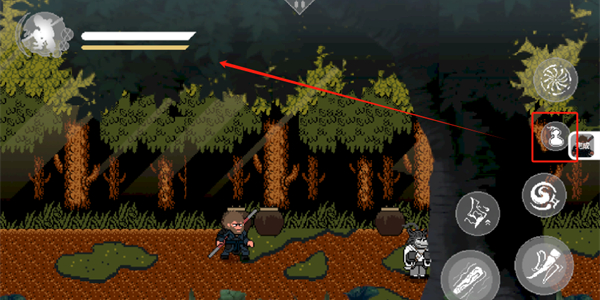 4、屏幕右侧的葫芦图标点击即可恢复角色的状态,在战斗中非常有用。