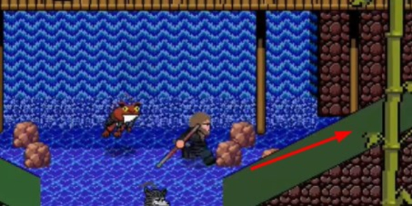 2、离开土地庙后一直往前走,按照下图箭头所指移动,来到下图位置后上桥。