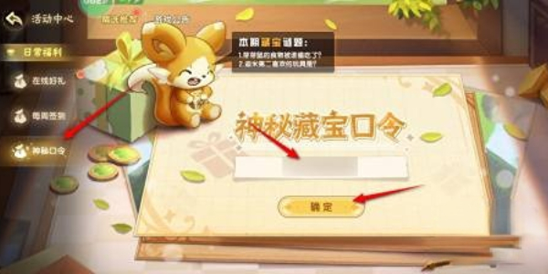 2、在活动中心界面我们点击左侧菜单栏中的“神秘口令”选项。