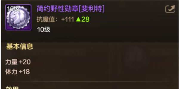 简约野性勋章能增加20点力量、18点体力,简约斗志勋章能增加19点力智,紫色公会勋章都能增加111点抗魔,效果都是攻击世界领主时附加3%的伤害。