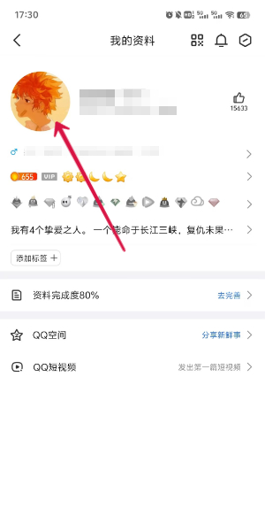 2、接着进入我的资料界面,在新的页面中我们再次点击QQ头像进入头像编辑界面。