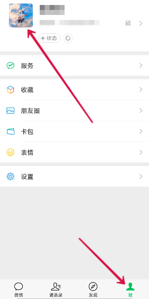 1、打开微信,点击右下角【我】进入个人中心界面,在个人中心界面点击上方的微信头像。