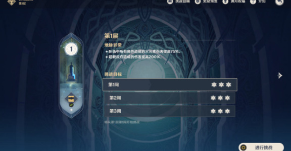 1、玩家来到深渊螺旋秘境,然后进入第1层第1间,这里的怪等级较低,非常好挑战。