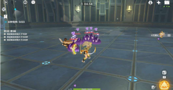 2、进入深渊后开启挑战,然后前往场地的侧面,使用卡齐娜的战技,待5个史莱姆聚在一起。