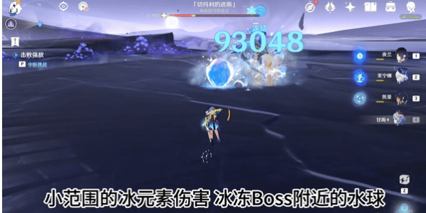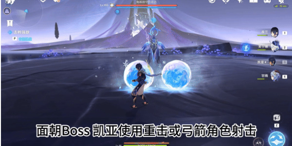若玩家只有凯亚,可以利用冰球飞向Boss时,小范围的冰元素伤害冰冻Boss附近的水球。