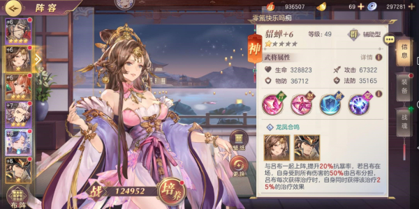 核心是利用吕布和貂蝉的羁绊,承担部分伤害,同时貂蝉和华佗、蔡文姬提供回血和攻击加成,确保即使不能瞬间击败对手,也能保持我方的生存能力。