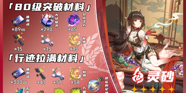 崩坏星穹铁道灵砂养成需要什么材料,灵砂是2.5下半场卡池即将登场的一位五星限定火属性丰饶角色,很多准备抽灵砂的玩家不知道给她准备哪些突破材料,小编下面就为大家整理出灵砂角色突破、行迹升级等相关资料,感兴趣的小伙伴可以来看看。