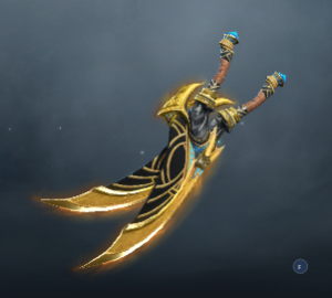 简介:暗色刀身由神秘矿石提炼而成,握柄的胡狼装饰象征着无上神权;