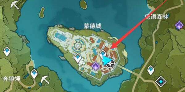 传送到蒙德城内,在喷泉对面找到猎鹿人餐馆。