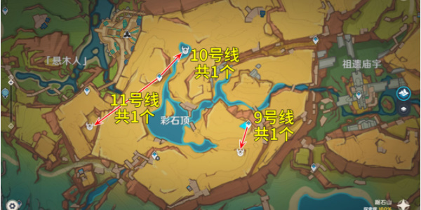 5、彩石顶,共有3个大灵显化身,按照下图所示路线进行讨伐即可。
