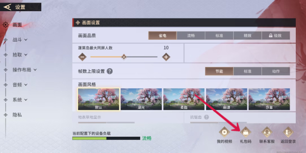 3、进入设置界面我们找到右下角的“礼包码”功能选项,点击进入。