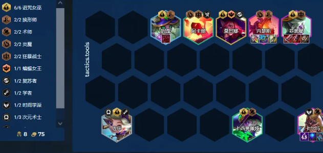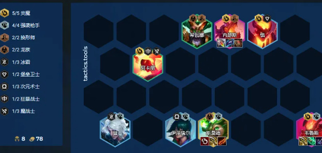 炎魔成型难度低但强度高,小火龙或者泽拉斯充当外援;5炎魔提供70%的攻速,加上18%的斩杀效果,能让这个这两个五费大C,强度逆天。