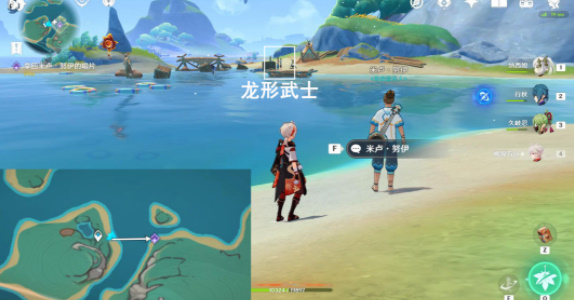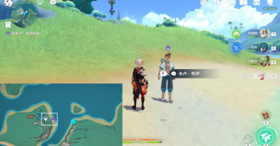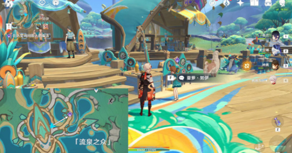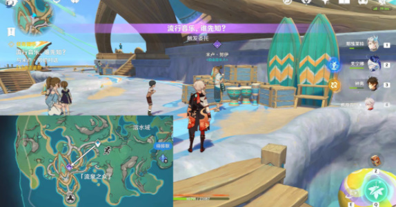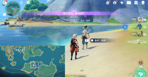 5、再次接取到「流行音乐,谁先知?」委托任务,传送流泉之众东南方向锚点,往地图的东方向走,前往海滩边,与米卢·努伊对话。