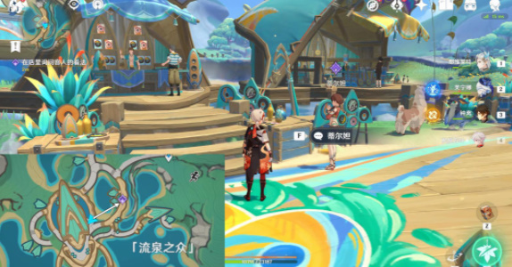 1、传送流泉之众北方向锚点,往地图的东南方向走,前往广场,与米卢·努伊对话接取任务。