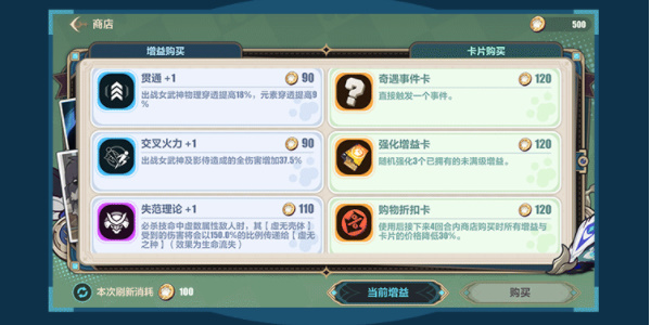 在商店地格中,舰长可使用探索中获取的金玉铸币购买增益效果,快速提升战斗力!
