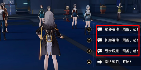 2、离开传送锚点后向右前方正在热身的群众走过去就可以触发隐藏对话,如下图所示。