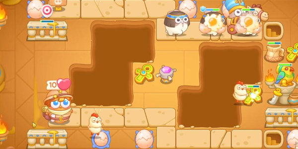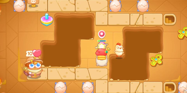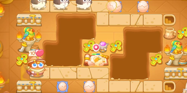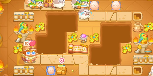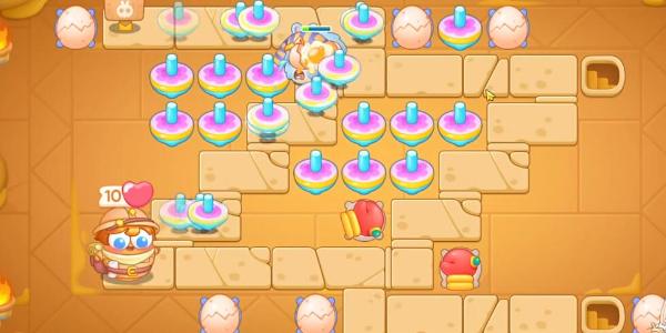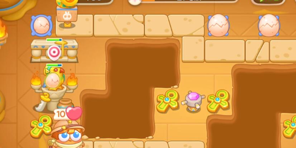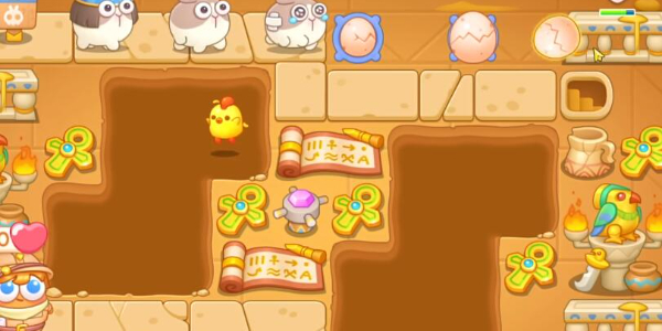 3.将中间指定障碍物标记进行清理,再在左下角放置蛋壳,有金币就直接升级。