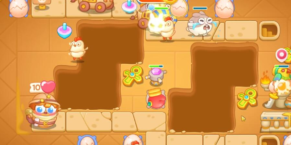 1.首先需要在上方放置蛋壳,并且升到满级,随后标记左侧障碍物进行清理。