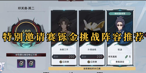 2、进入战术板界面,点击叩关赛,然后点击叩关赛·其二中新出的特别邀请赛·铄金,然后就会出现短信。