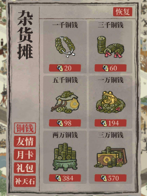 6、在商店内用友情点和补天石兑换礼包,部分礼包里面也包括大量铜币。