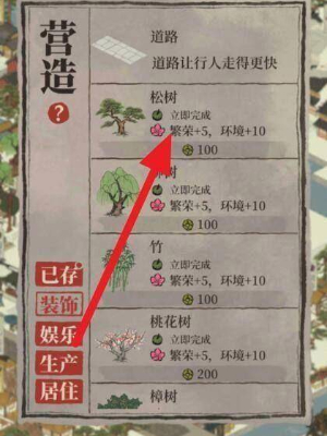 树木在游戏中是一种装饰物品,不仅可以提升繁荣度,还能提升环境值。将树木种植在环境差的位置,可以有效提升该位置的环境度。