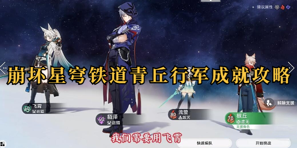 崩坏星穹铁道青丘行军成就攻略,该成就需要玩家将2.5版本新角色飞霄、貊泽,以及2.4下半场卡池角色椒丘组成一队进行战斗,下面就是小编为大家带来的成就攻略,还没有达成的玩家可以来看看。